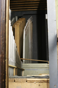 8.6.-17.6.: Jetzt sieht es im Gehäuse schon wieder aus "wie in einer Orgel". Nach und nach werden die Pfeifen wieder eingesetzt.